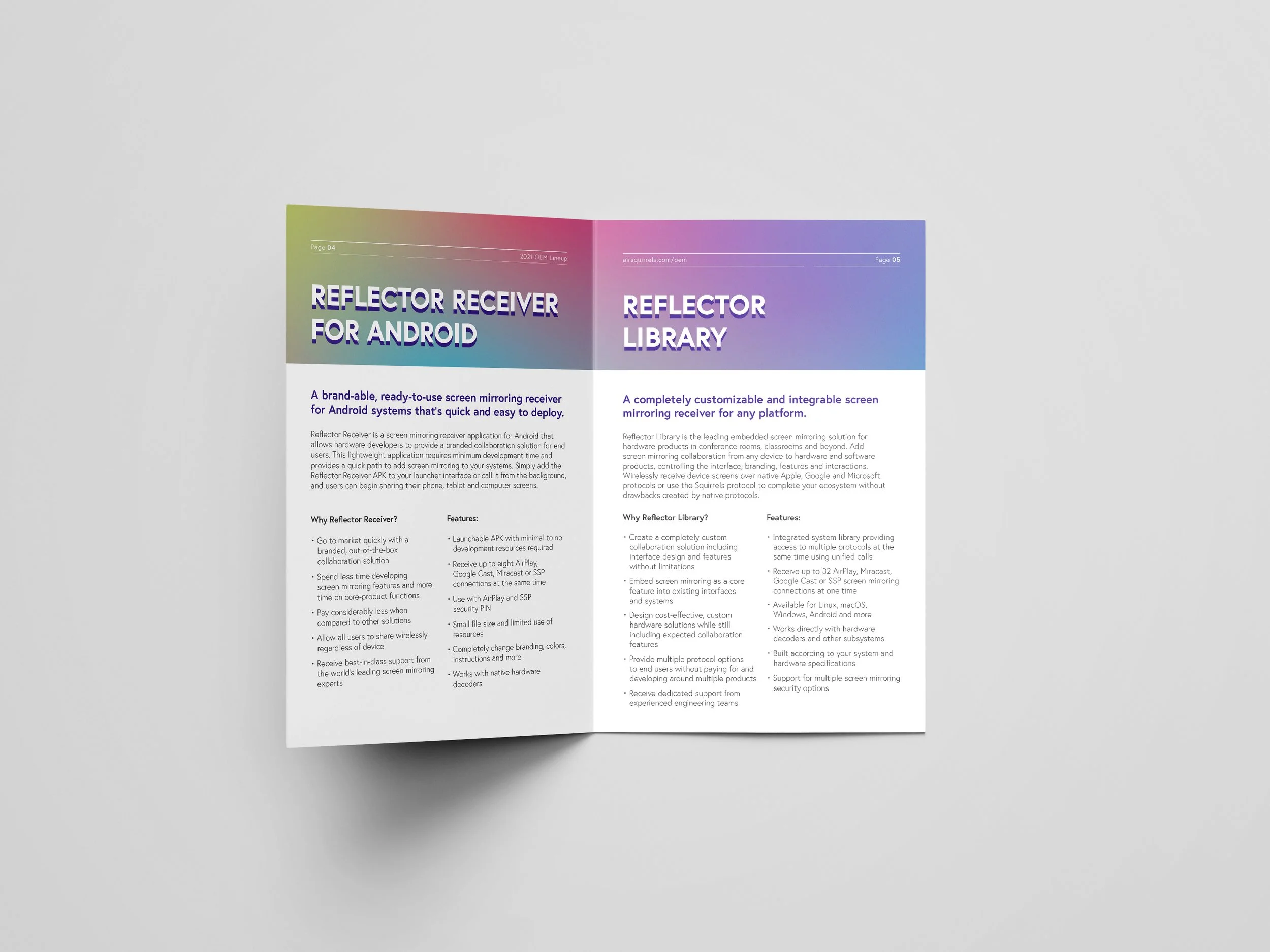 The rebrand aimed to create consistency across the Squirrels brand and its three main products: Ditto, Reflector, and AirParrot. To achieve this, I used a brand color from each product to create a vibrant, abstract gradient background.